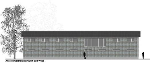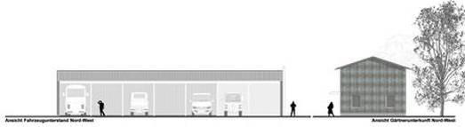 neubau einer gärtnerInnenunterkunft mit fahrzeughalle, bonn-rheinaue (2015)