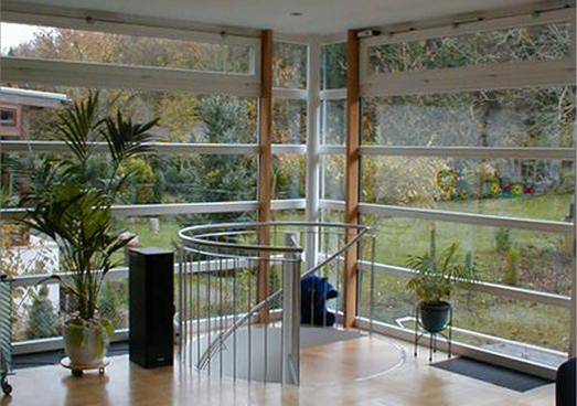 die wintergartenkonstruktion besteht aus einer tragenden holzkonstruktion aus eiche und querliegenden verglasten holz/alu-sprossen.