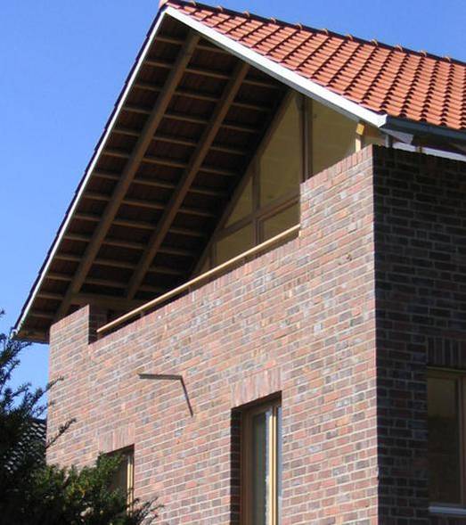 das äußere erscheinungbild ist geprägt durch ziegelmauerwerk und holz,