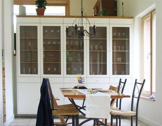 der innenausbau ist in hochwertiger handwerklicher arbeit ausgeführt, geölte massive eiche und weiß gestrichene/lackierte flächen sind prägende materialien des hauses.