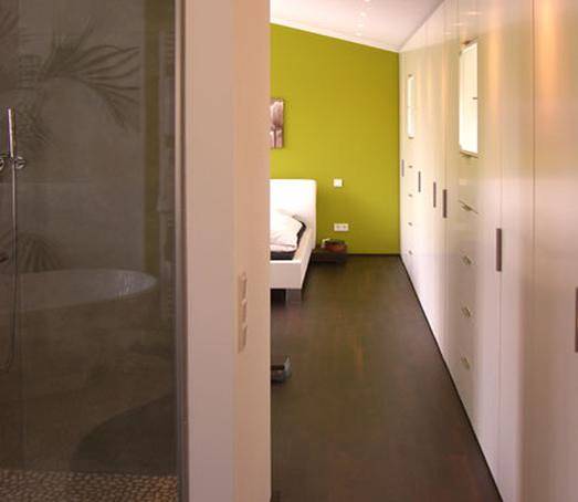 im dachgeschoss entstand neben einem offenen bad, ein schlaf- und ankleidebereich.